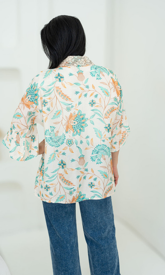 Embroidered Printed Kimono