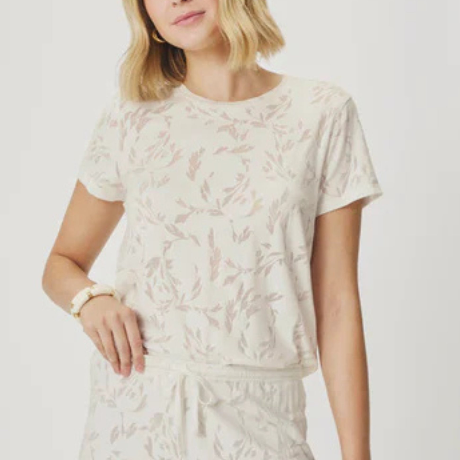 Why we picked it: The Air Burnout Tee is casual elevated to an art form. That gorgeous shell windswept color is soft and sophisticated, while the burnout leaf print adds subtle texture and visual interest that makes this way more special than your average tee. The lightweight, airy fabric feels amazing against your skin — perfect for warm days when you want to look polished but stay cool. The burnout technique creates a beautiful, almost ethereal quality that catches the light just right.