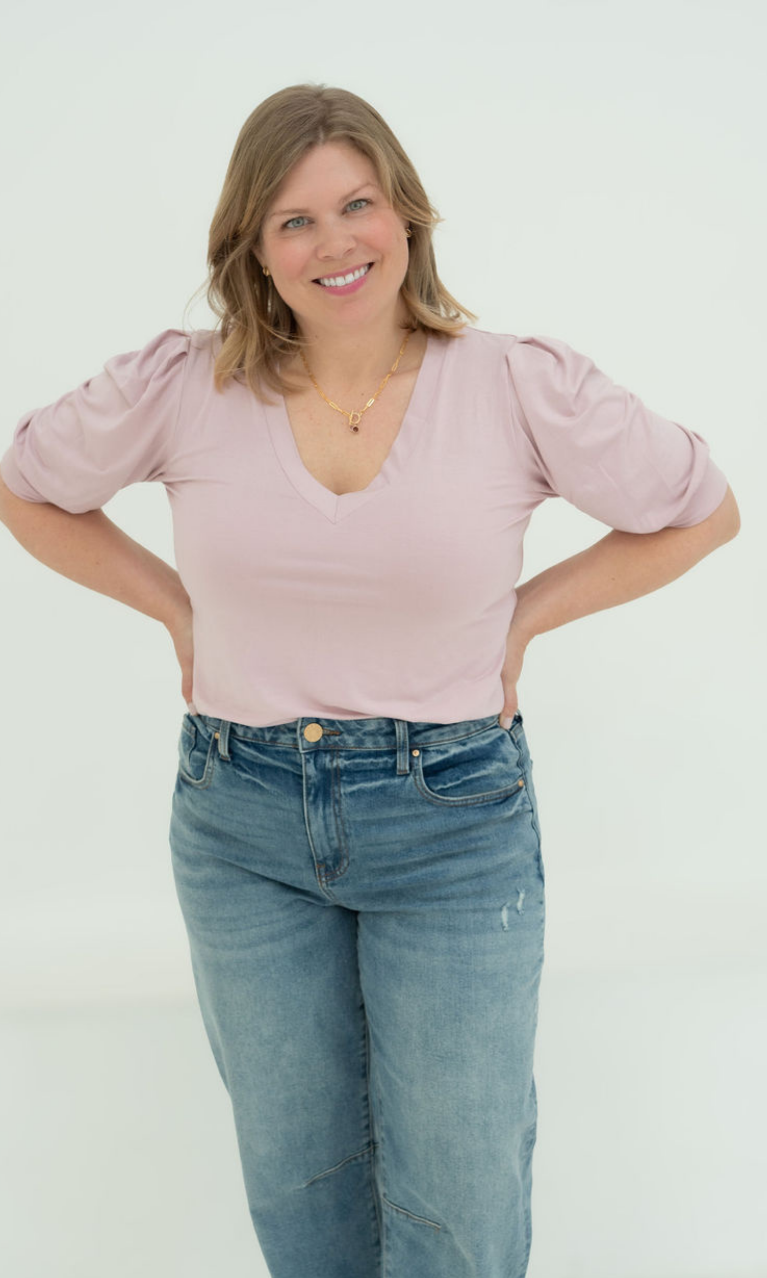 - For a casual look, pair with a lighter denim (we suggest the Ashley Slouchy Barrel) and throw on one of our Kim + Ono Kimonos.