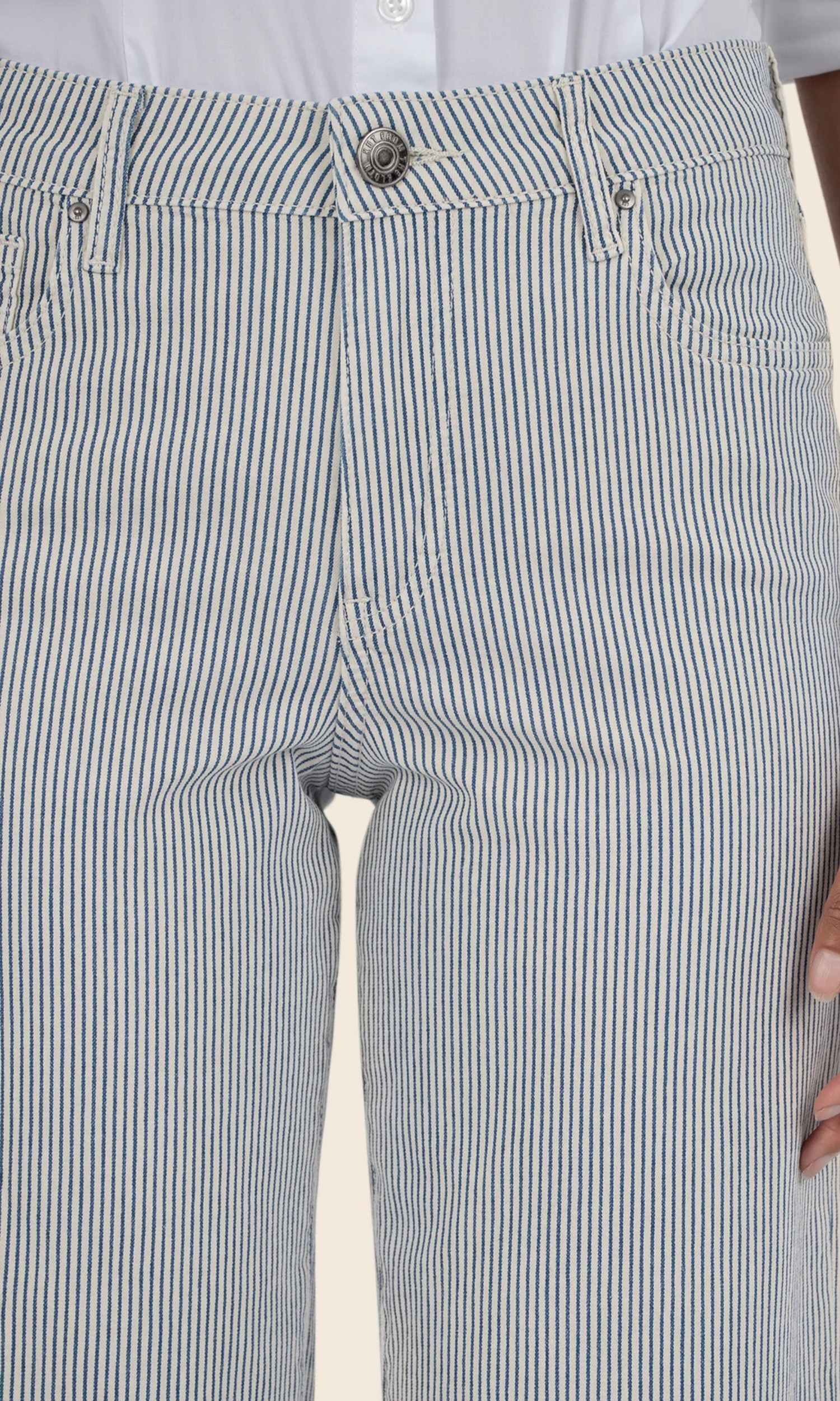 Why we picked it: There's no denying that the wide leg jean is back! This Charlotte is special because of the "railroad" stripe". We are all drooling over here because it makes us all look a little taller! A 10.5 inch" high waist cropped (27") wide-leg (19" leg opening) jean, cut from lightweight stretch denim. The bold railroad stripe pattern and raw hem detail add a modern, edgy look. These are the pair of KUT you've been waiting to add to your closet.