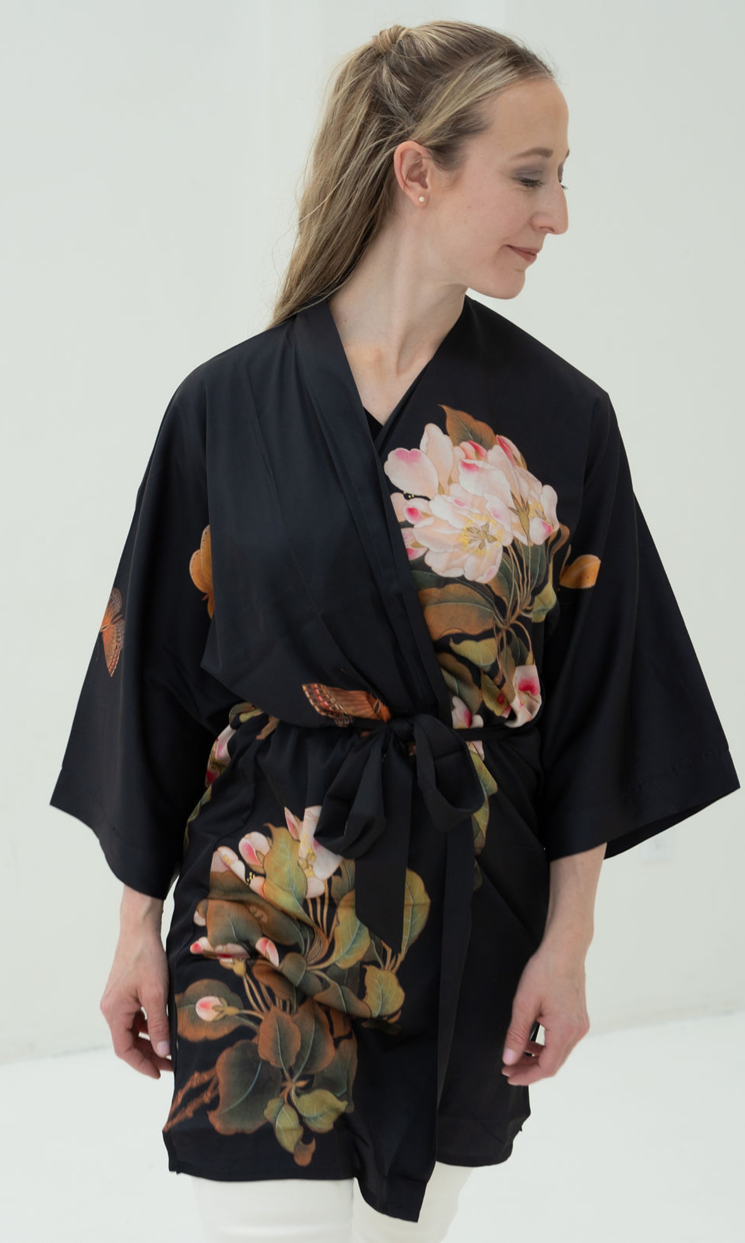 Peony & Butterfly Short Kimono Robe