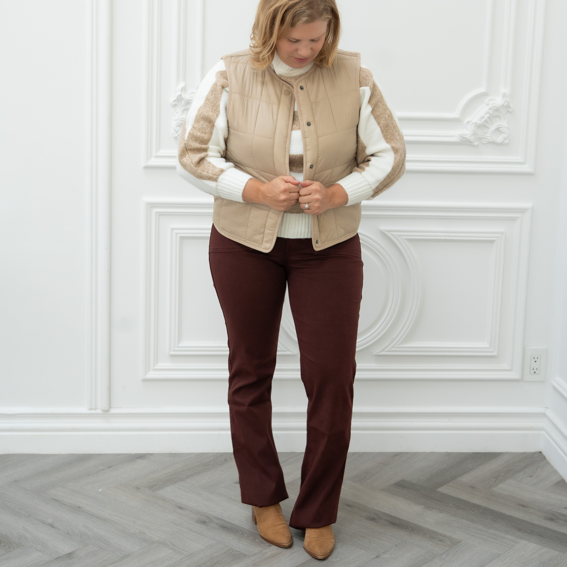 Why we picked it: We brought Sanctuary back into the Smithery fold for their unbeatable mix of quality, fit, and comfort. The Hayden Bootcut hits all those marks—and we love that Sanctuary is committed to sustainability, weaving recycled materials into their fabrics. A bootcut that’s sleek and comfortable is a rare find. The Sculpted Brook offers that tailored look without sacrificing ease, thanks to the stretch fabric and elastic waistband. The deep wine hue makes it a seasonal standout that transitions seamlessly from workdays to evenings out.