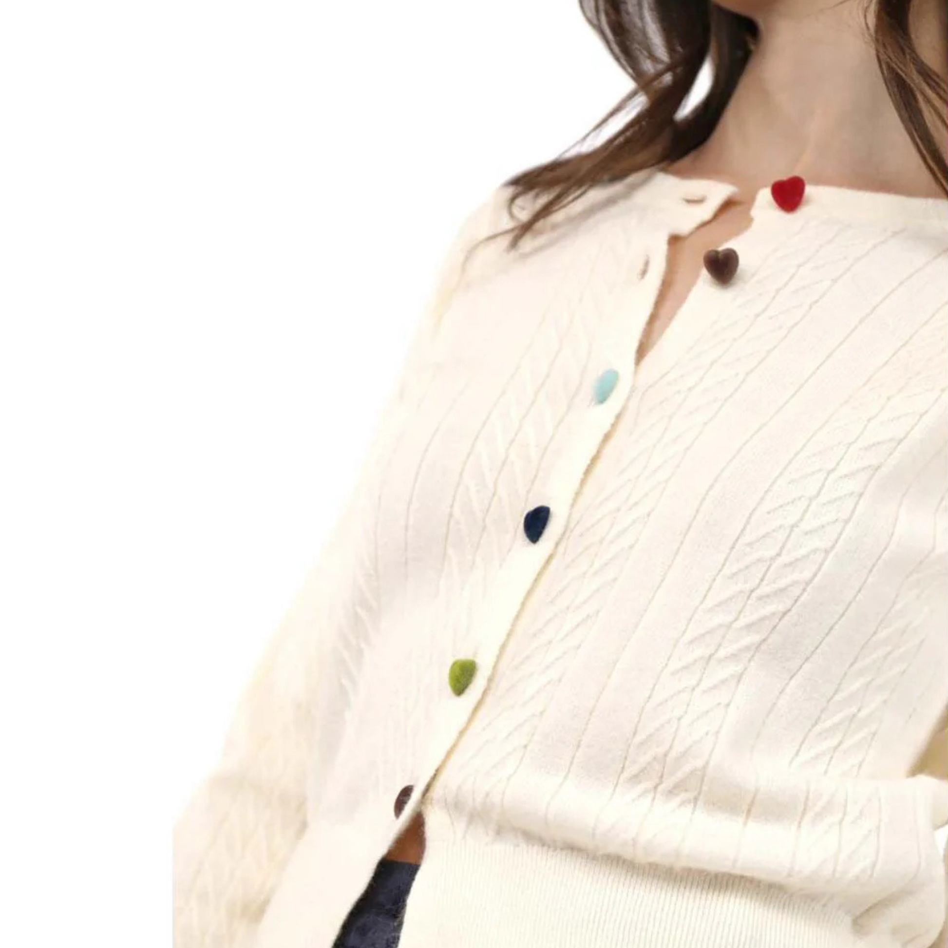 Why we picked it: Wrap yourself in everyday sweetness with the Mochi Heart Sweater — a cozy, cloud-soft knit that feels as delightful as its name suggests. Designed with a classic silhouette and just the right amount of stretch, this sweater boasts a delicate textured pattern and playful multicolor heart-shaped buttons that add a whimsical touch to your wardrobe. Whether you’re pairing it with your favorite denim or a relaxed pant, it’s the perfect piece for effortless style with heart!