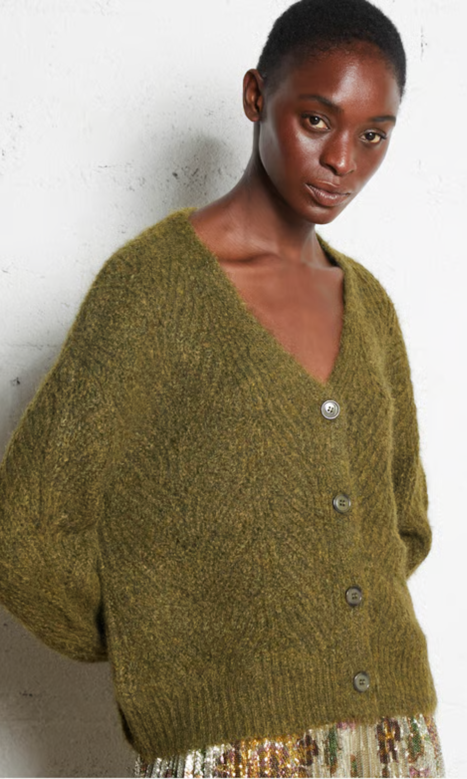 Why we picked it: Because the perfect cozy cardigan is a non-negotiable — and this one delivers on every level. This soft, textured cardigan is what comfort meets style looks like. That beautiful olive green shade is rich, earthy, and so much more interesting than basic black or grey - but as we know, it's still a neutral and will go with so much you already have in your closet! The length hits at just the right spot to flatter your waistline, while the relaxed V-neck and oversized fit keep everything feeling wonderfully laid-back. The soft, fuzzy texture adds visual interest and that extra cozy factor we all crave in fall and winter.