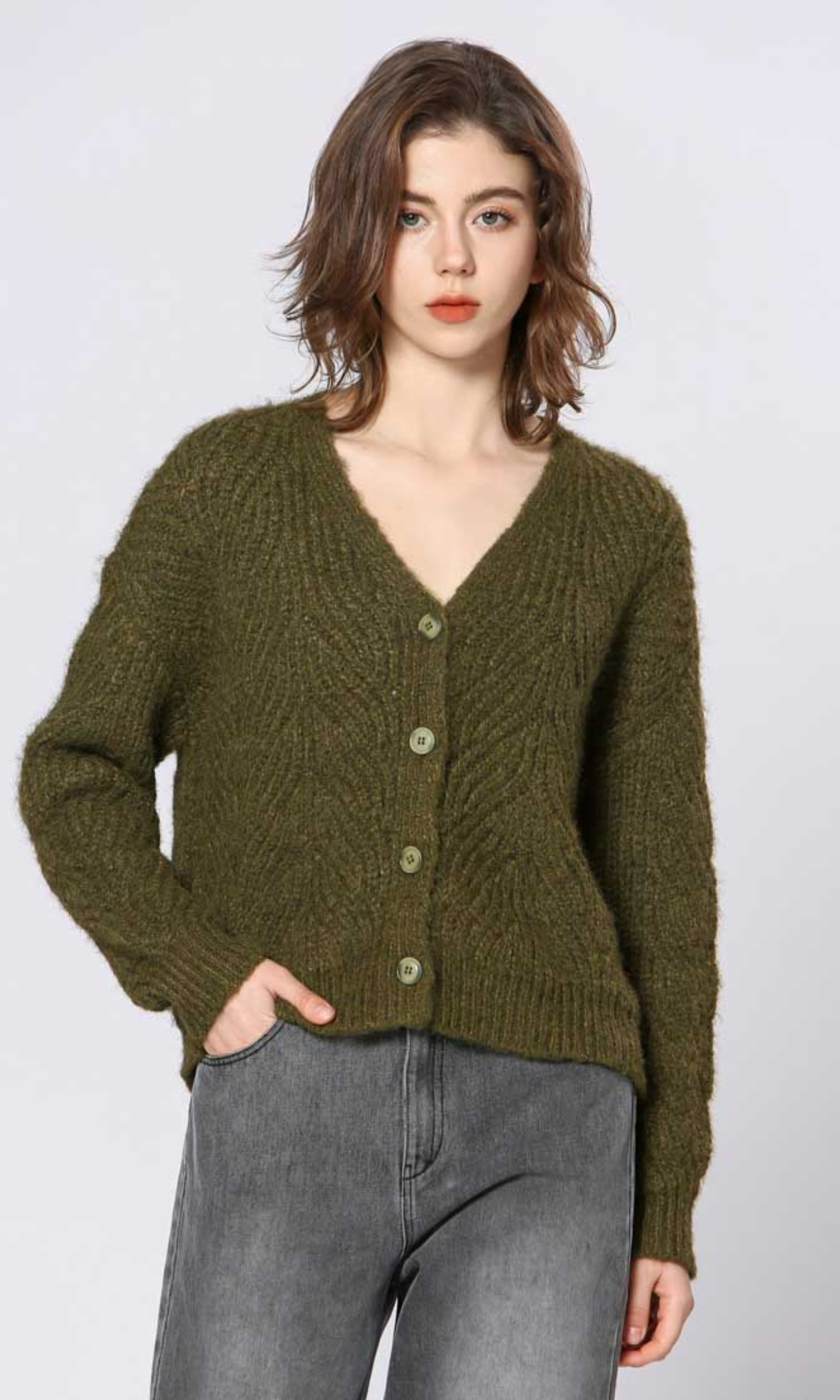 Olive Cozy Button-Up Cardigan