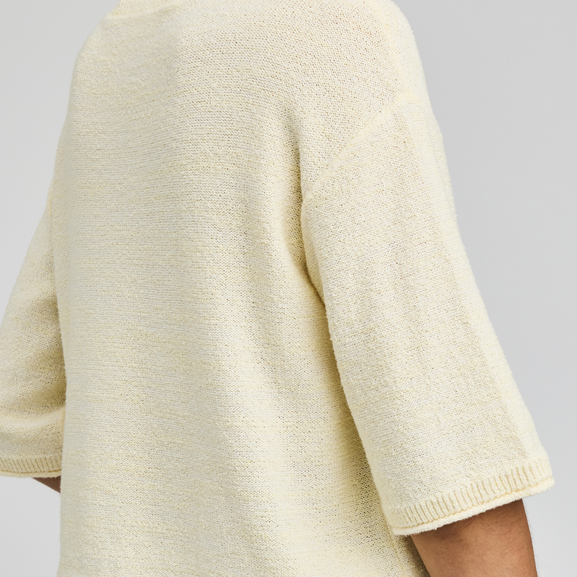 Crafted in a lightweight textured knit, Genevieve drapes beautifully while holding its shape. The subtle boxy silhouette gives it a modern feel, and the elbow-length sleeves add that perfectly balanced proportion — flattering, easy, and endlessly wearable.