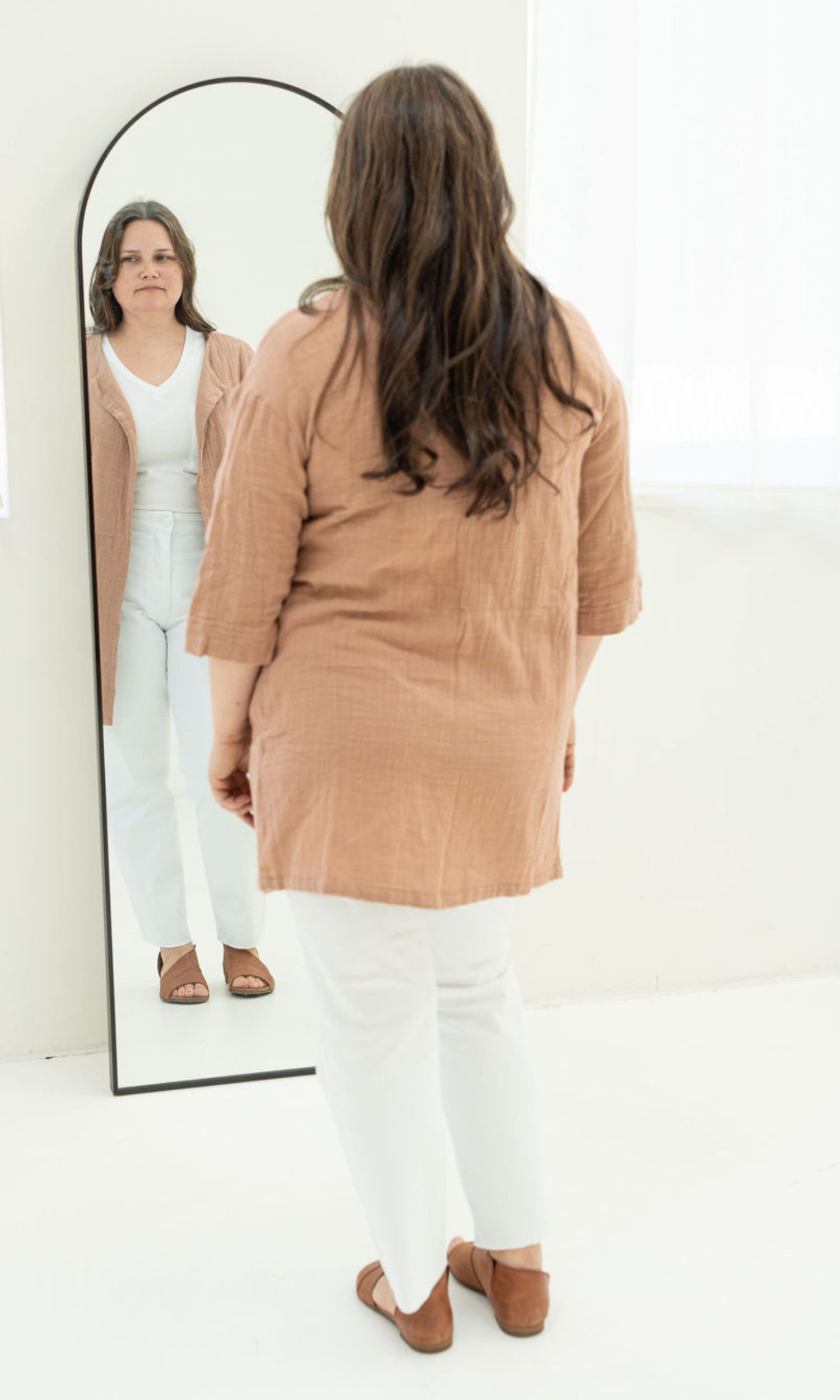 - Place overtop of a patterned blouse (Pictured: Stacey Blouse) tucked into your go-to skinny jeans with loafs for an effortless, yet chic look